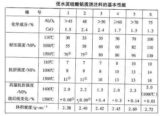 (表)低水泥硅酸鋁質澆注料的基本性能
