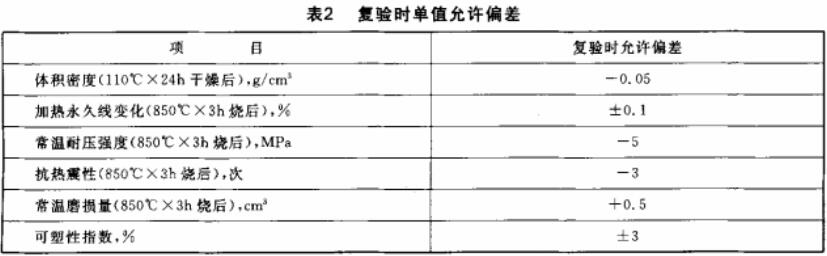 7.2.3 常溫耐壓強度、常溫磨損量、可塑性指數為驗收時的檢驗項目。