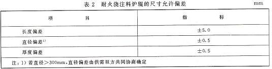 4.2 耐火澆注料爐輥的尺寸允許偏差應符合表2的規定