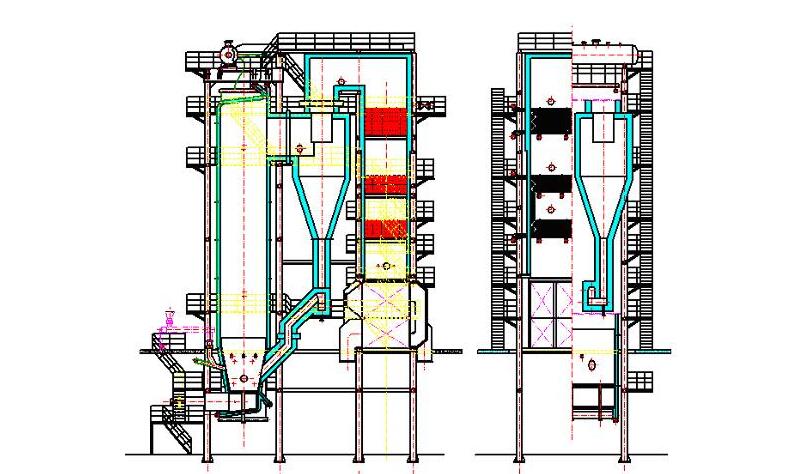 雖然循環流化床鍋爐的工作溫度局限于850℃~1050℃范圍內,但在特殊工況下,有可能超溫,因而最低工作溫度不應低于1500℃。特殊部位需選擇導熱性較好或絕熱性較好的材料。水冷風室外由于初始點火溫度較高,又必須選擇耐火度較高的耐火澆注料或可塑料等。