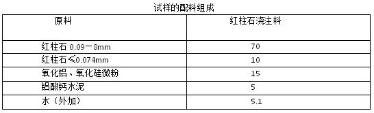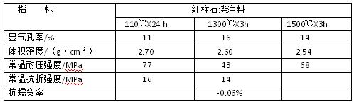 結(jié)果與討論:通過相關(guān)技術(shù)依據(jù)檢測出紅柱石澆注料的,相關(guān)指標見下表。