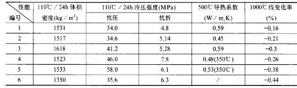 表1是目前輕質澆注料的典型的性能指標。可以看出,市場上的商品高強度輕質澆注料的抗壓強度在30MPa以上,體積密度都很大,已接近重質澆注料。