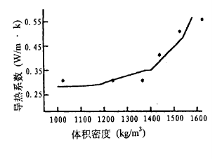 圖2輕質澆注料的體積密度與導熱系數(shù)的關系