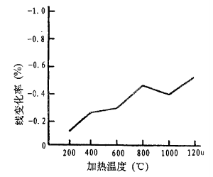 輕質隔熱澆注料是不需經(jīng)過預燒,就在窗爐內直接加熱至高溫下使用,但烘干和受熱后產生過大的收縮會導致出現(xiàn)裂紋而破壞。圖4是輕質隔熱澆注料加熱時的線變化。通常情況下,輕質澆注料的體積密度越大,線收縮率隨溫度的升高而增加的越小。反之,線收縮率隨溫度的升高而增加的越大。