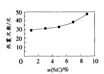 (4) 高鋁質耐磨澆注料熱震穩定性隨SiC加入量的增加而增加,當加入量超過5%時熱震次數增加明顯。