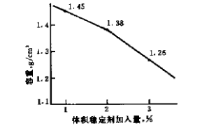 1.2.1體積穩(wěn)定劑加入量對輕質(zhì)部分容重的影響
