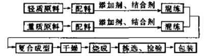 輕重質(zhì)復(fù)合保溫耐火磚試生產(chǎn)工藝流程如下:
