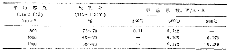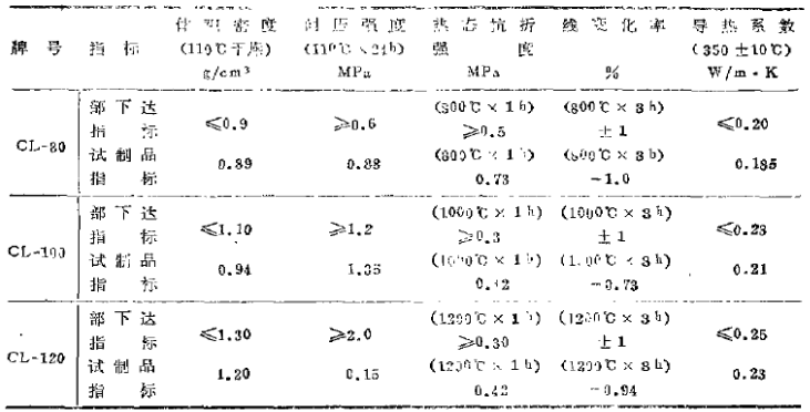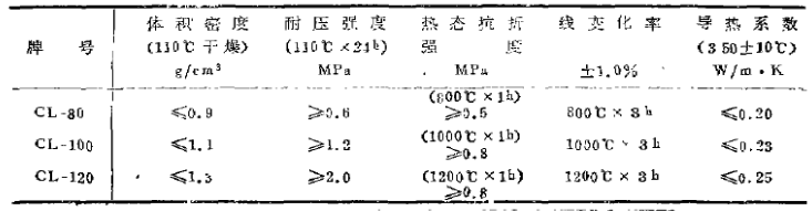 日本牌號GL-80、CL-100, CL-120輕質(zhì)隔熱澆注料具有容重小,高溫下線變化率低,抗折強度高,導熱系數(shù)小等特點,其技術(shù)指標見表1。