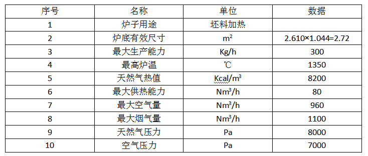 表1 推桿式鍛造加熱爐技術參數