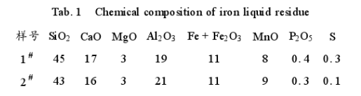 表1鐵液渣的化學成分W (%)
