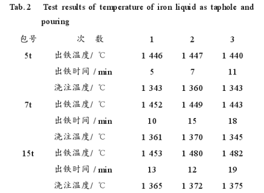 表2 出鐵、澆注時鐵液溫度測定結果