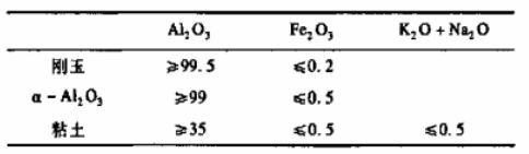 1.2 采用高檔剛玉為主原料,加入部分α-Al2O3及低鐵高塑性的粘土,高溫時生成部分莫來石,以剛玉相為主晶相,莫來石相為結合相,并加入藍晶石族原料為膨脹劑,保證了產品燒后的體積穩定,可塑法成型。添加物燃盡法生產的剛玉莫來石輕質磚是在配料中添加一部分可燃物,如木屑、聚苯乙烯球、焦炭等,在燒成時,可燃物燃燒后產生氣孔,因此降低磚的體積密度,用此方法可制成體積密度要求較小的輕質磚。采用的添加燃盡物為木屑和聚苯乙烯球,木屑經1mm篩選,不雜質;聚苯乙烯球的直徑2~0.5mm,外觀潔白,粒狀,粒度均勻,原料指標見表1。