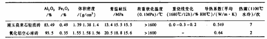 表3 剛玉莫來石輕質磚和氧化鋁空心球磚理化指標對比