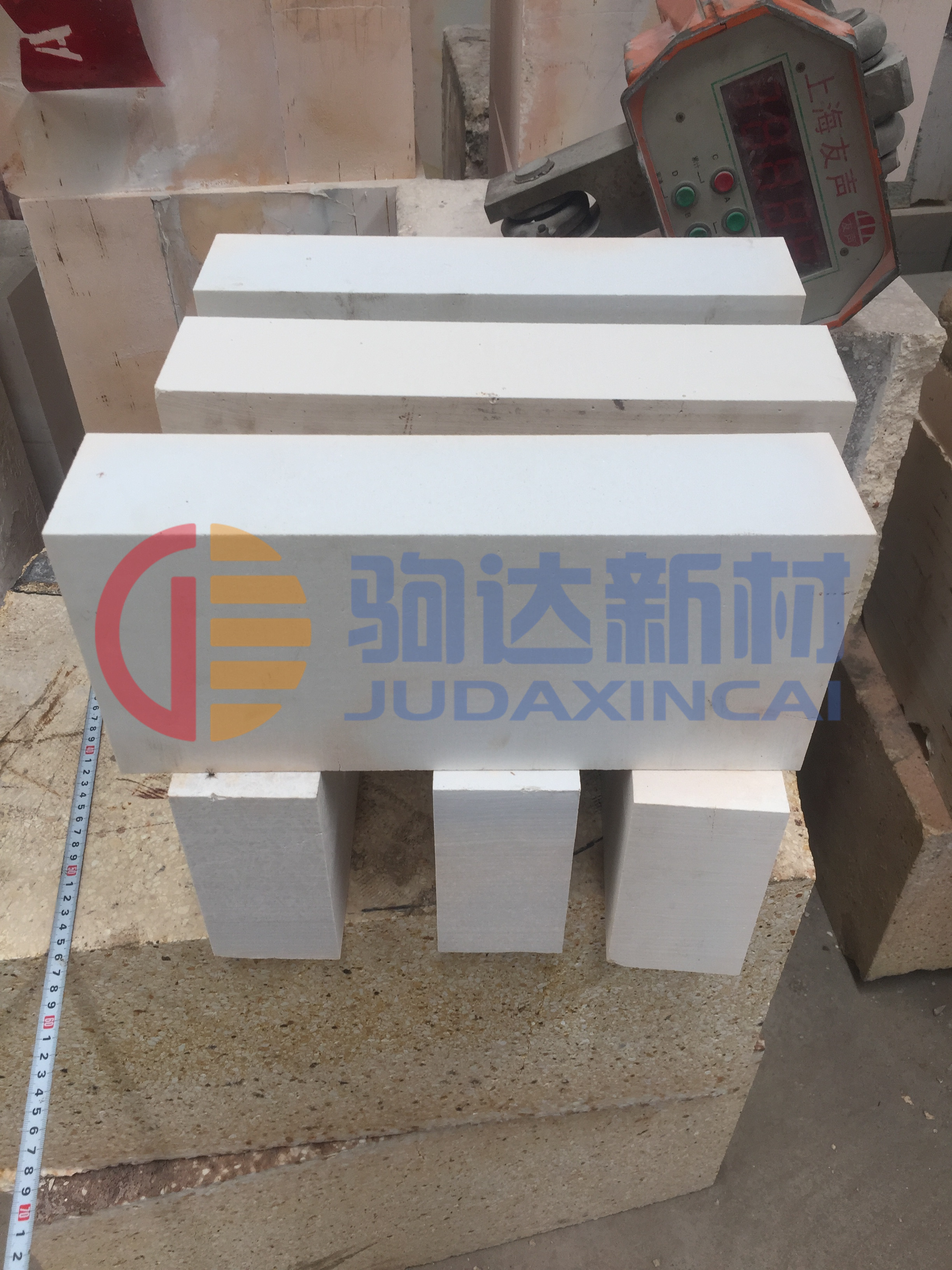 燒成后的荒坯根據要求可磨制成不同形狀尺寸的磚型,磨后的磚外形規整,尺寸準確。用此方法生產的剛玉莫來石輕質隔熱磚可制作外形復雜、按用戶要求的各種形狀的異型磚并保證尺寸準確。