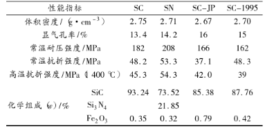 表1 不同SiC試樣理化性能指標(biāo)比較