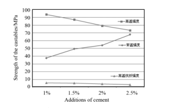 圖2 水泥加入量與澆注料強度的關系