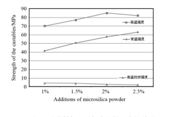 圖1 硅微粉加入量與澆注料強度的關系