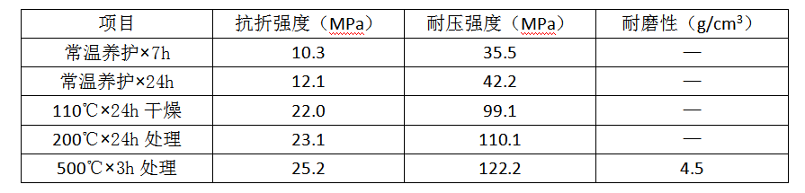 2 快硬耐磨耐火澆注料的技術(shù)性能