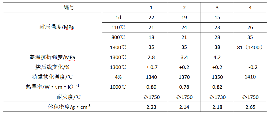 表1為耐火噴涂料重質的主要性能。編號1為CA-50水泥高鋁質耐火噴涂料,編號2和編號3分別為CA-50水泥和水玻璃黏土質耐火噴涂料,編號4的磷酸鹽高鋁質耐火噴涂料。從表中看出,CA-50水泥噴涂料中溫強度降低,而水玻璃和磷酸鹽和磷酸鹽噴涂料隨著加熱溫度的升高而提高。熱導率約為 0.8W/(m·K),體積密度與振動成型同品種耐火澆注料類似,略低一些。