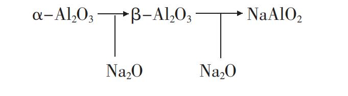 (1)剛玉磚(α-Al2O3)、氧化鋁質低水泥澆注料是以剛玉(α-Al2O3)為主體,并有少量的CaO-Al2O3 組成,這些礦物如果堿 Na2O侵入,就會產生下式所示的反應: