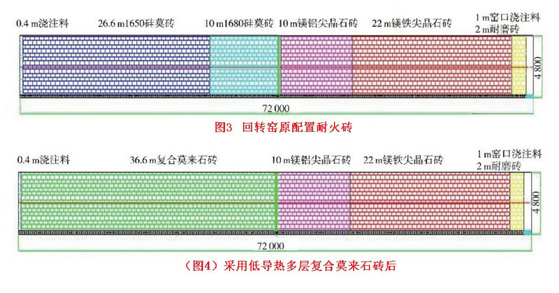 回轉窯分解帶與過渡帶采用低導熱多層復合莫來石磚的節能效果
