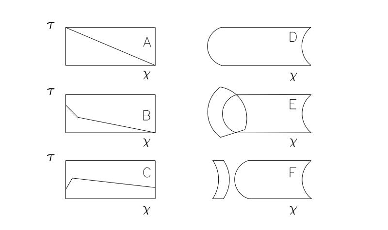 根據(jù)J.White提出的理論,在熱應(yīng)力條件下,有三種情況,如圖2所示,圖左邊為磚的縱向溫度分布