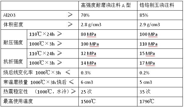 3     高強度耐火澆注料技術指標