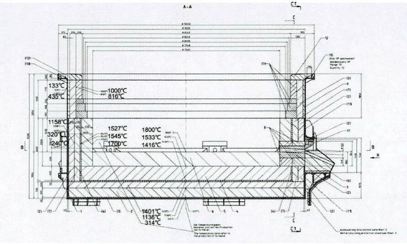 根據(jù)上圖,工業(yè)硅爐襯在正常生產時,其中心熔池反應溫度高達2000℃以上;爐底及爐墻側部炭磚溫度達到1800℃左右,經過熱傳導,傳遞到接觸碳素材料部位的耐火磚表面的溫度均達到了1550℃(如果爐膛參數(shù)設計不合理或超溫超負荷的情況下溫度會更高),傳統(tǒng)的爐襯材料設計為:爐墻從外到內分別為;絕緣石棉板、保溫層、高鋁磚、碳磚。傳統(tǒng)的爐襯材料配置里高鋁磚受高溫及熱力的條件下極容易變形軟化,導致熔池區(qū)域的碳素材料隨之變形拉開縫隙,最后導致高溫硅水從碳素材料縫隙漏出形成穿爐事故。