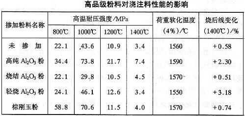 (表)高品級粉料對澆注料性能的影響